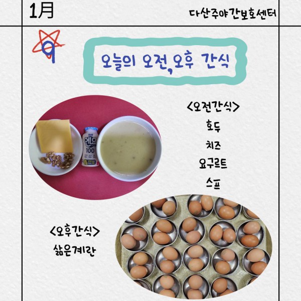 1월9일 오전/오후간식 페이지 정보 작성자 명품다산주야간보호센터 작성일26-01-09 15:15 조회1,012회 댓글0건 관련링크 이전글 다음글 목록 본문 오전/오후간식 입니다. 이전글 다음글 목록