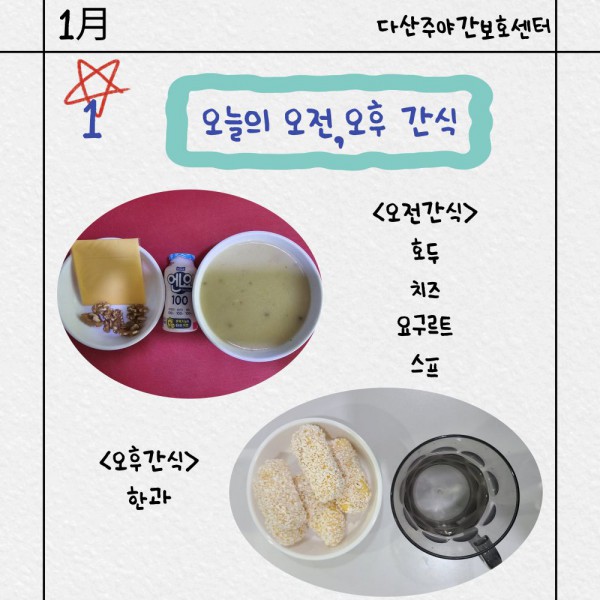 1월1일 오전/오후간식 페이지 정보 작성자 명품다산주야간보호센터 작성일26-01-01 15:29 조회1,038회 댓글0건 관련링크 이전글 다음글 목록 본문 오전/오후간식 입니다. 이전글 다음글 목록