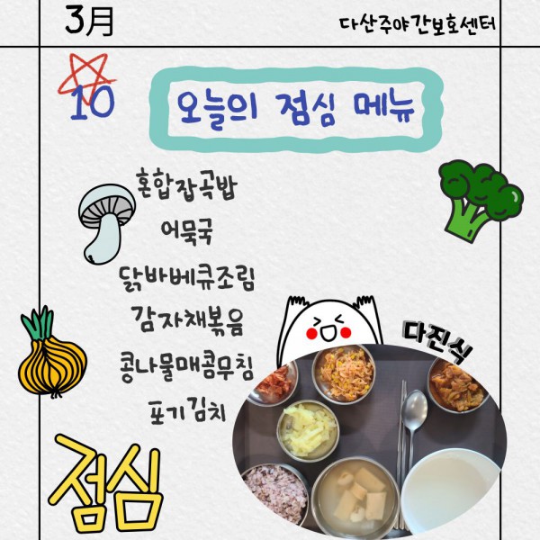 3월10일 오전/오후간식 페이지 정보 작성자 명품다산주야간보호센터 작성일26-03-10 18:51 조회632회 댓글0건 관련링크 이전글 다음글 목록 본문 오전/오후간식 입니다. 이전글 다음글 목록
