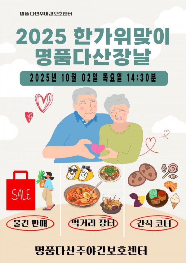 작성자 명품다산주야간보호센터 작성일25-09-29 15:42 조회683회 댓글0건관련링크