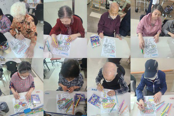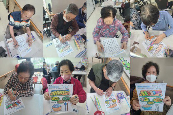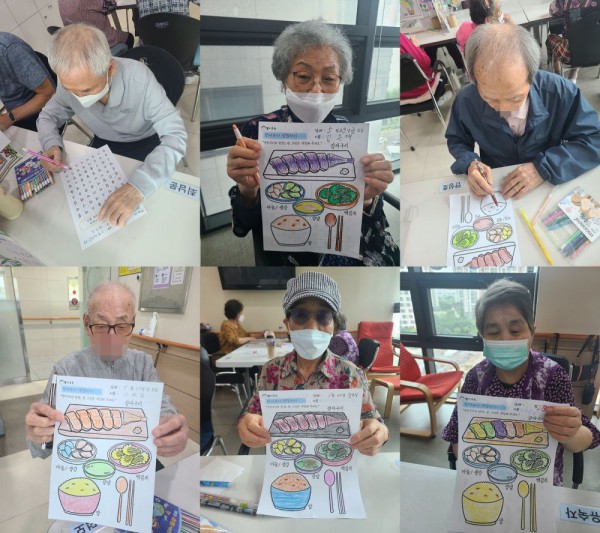 5월23일 인지활동 프로그램 Info. Writer 명품다산주야간보호센터 Date 25-05-23 13:22 View500 Reply0 Link 이전 다음 목록 Content 그림판에 있는 장어구이와 반찬에 대해서 나름대로 생각을 하시면서 먹음직 스럽게 색칠을 해보기!!보기에 있는 5월의 제철음식을 단어판에서 찾아서 동그라미 해보기!! 이전 다음 목록