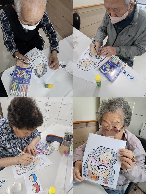 5월24일 인지활동 프로그램 Info. Writer 명품다산주야간보호센터 Date 25-05-24 17:52 View501 Reply0 Link 이전 다음 목록 Content 엄마와 아기의 그림판을 보시면서 색상을 골라서 예쁘게 색칠헤 보기!! 이전 다음 목록