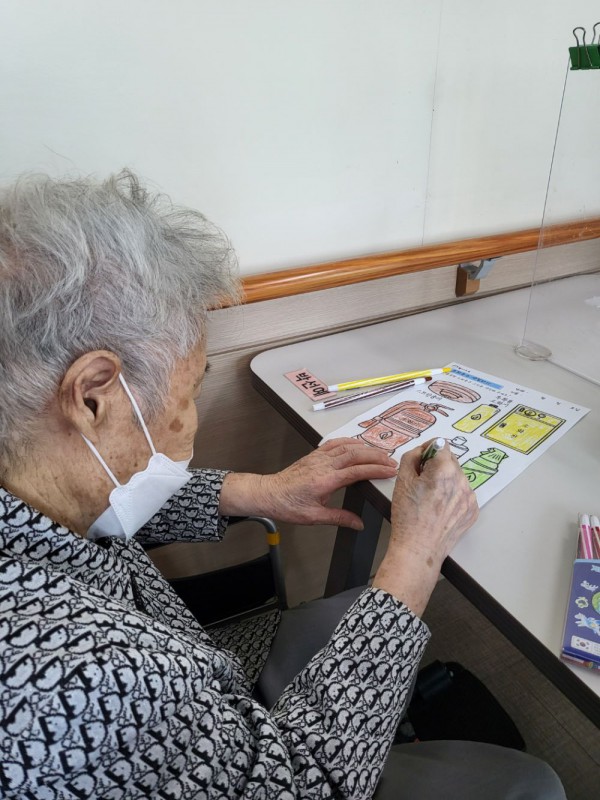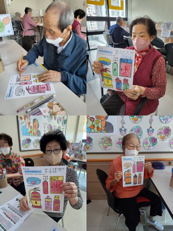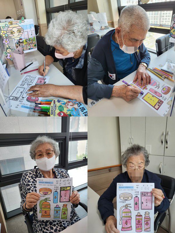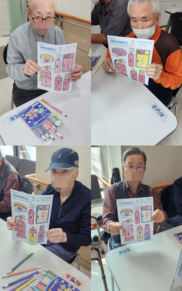 5월27일 인지활동 프로그램 Info. Writer 명품다산주야간보호센터 Date 25-05-27 12:04 View475 Reply0 Link 이전 다음 목록 Content 불이 났을때 대처 방법을 설명들 듣고 이해를 잘 하히고소화용구에 대해서 알아보고 사용법도 이해하시면서소화용구를 색상을 고려하여 색칠해 보기!!! 이전 다음 목록