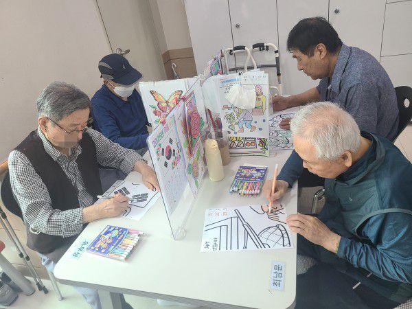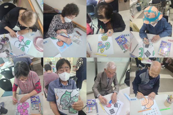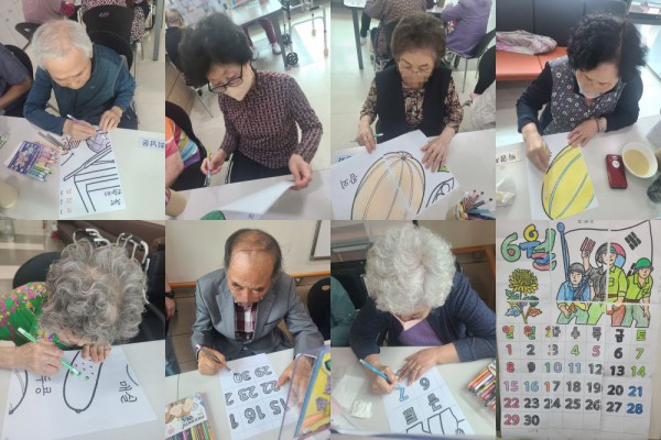 6월2일 인지활동 프로그램 Info. Writer 명품다산주야간보호센터 Date 25-06-02 13:34 View476 Reply0 Link 이전 다음 목록 Content 호국의 달 6월을 맞이하여 어르신들이 함께 참여하여 그림을 완성하는협동화로 각 파트별로 색칠하여서 나중에 합하여 전체 그림을 완성합니다.모두 파트별로 열심히 색칠을 잘 해주셔서 그림을 완성하시고 좋아하셨습니다. 이전 다음 목록