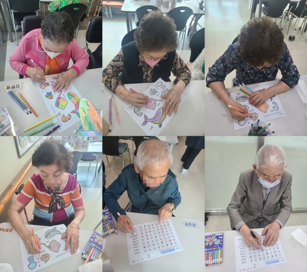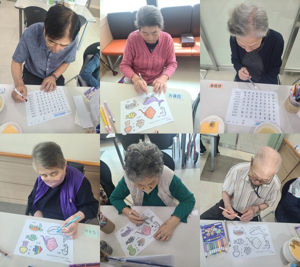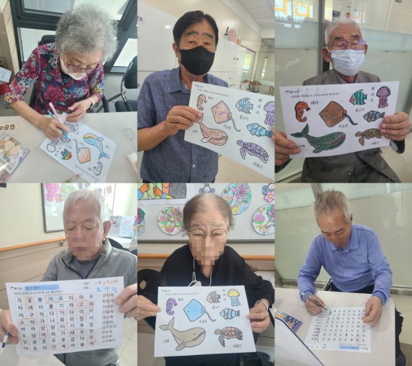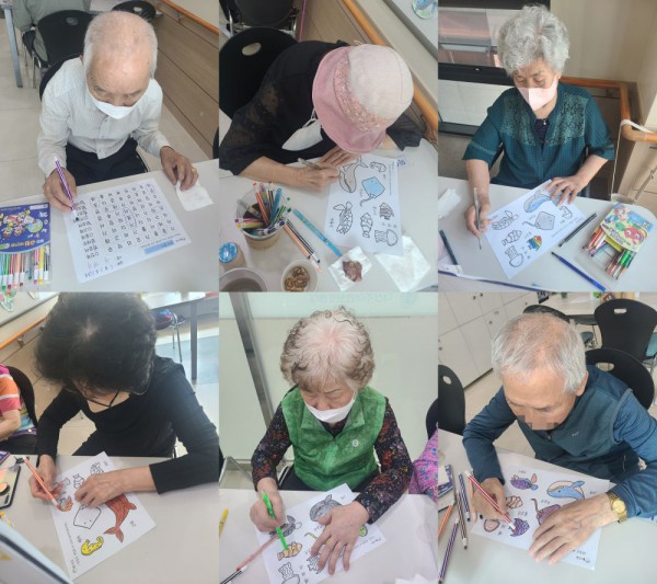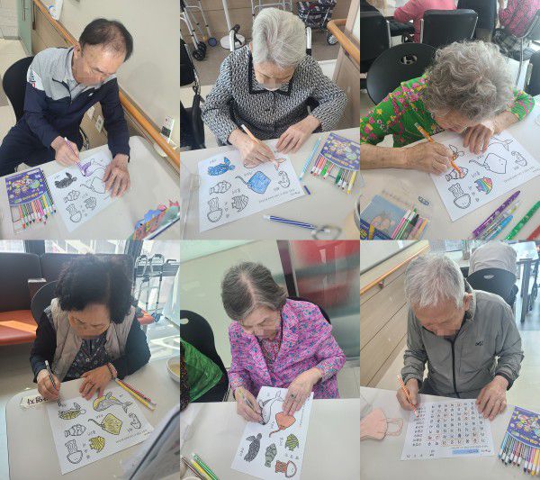 6월3일 인지활동 프로그램 Info. Writer 명품다산주야간보호센터 Date 25-06-03 11:23 View471 Reply0 Link 이전 다음 목록 Content 바다에 사는 동물을 예쁘게 색칠하여 완성해 보기!!바다에 사는 동물의 이름을 글자판에서 찾아서 동그라미 해서 완성하기!! 이전 다음 목록
