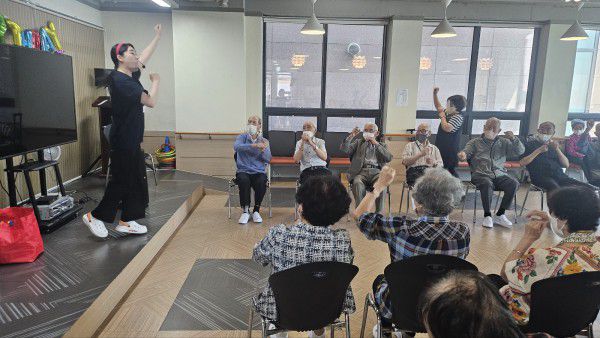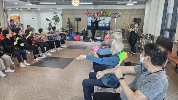 6월6일 외부강사 프로그램(시연) Info. Writer 명품다산주야간보호센터 Date 25-06-06 11:40 View484 Reply0 Link 이전 다음 목록 Content 신나는 음악에 맞춰서 몸풀기 체조와 율동을 열심히 하시고도구를 이용하여 여러 동작들을 따라하시고 노래도 따라 불러 보시면서 어르신들 모두 즐겁고 재미있는 시간을 보냈습니다. 이전 다음 목록