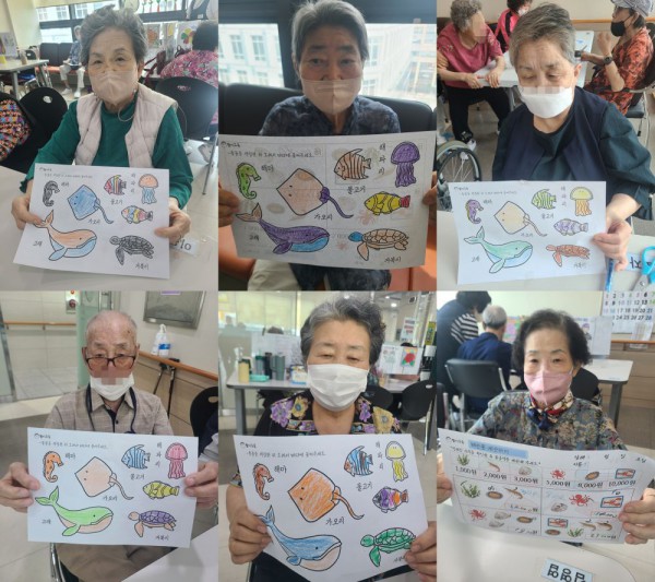 6월13일 인지활동 프로그램 Info. Writer 명품다산주야간보호센터 Date 25-06-13 11:56 View474 Reply0 Link 이전 다음 목록 Content 개당 정해진 가격을 확인한 후에 합산하여 가격을 적어 넣어 보기!!바다의 동물을 생각해 보면서 예쁘게 색칠하여 완성해 보기!! 이전 다음 목록