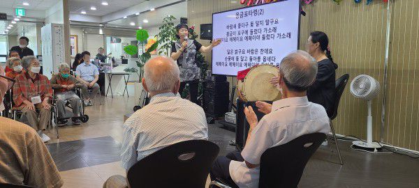 6월19일 외부강사 프로그램(민요교실) Info. Writer 명품다산주야간보호센터 Date 25-06-19 15:25 View476 Reply0 Link 이전 다음 목록 Content 장구를 치시면서 민요들 함께 힘차게 불러 보시고같은 민요를 여러번 불러 보면서 가사를 익히게 하시고어르신들이 민요를 직접 불러 보시게 함으로써신나고 흥이나고 재미있는 시간이 되었습니다. 이전 다음 목록