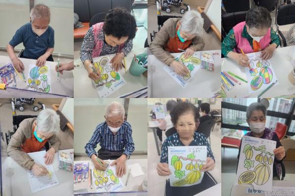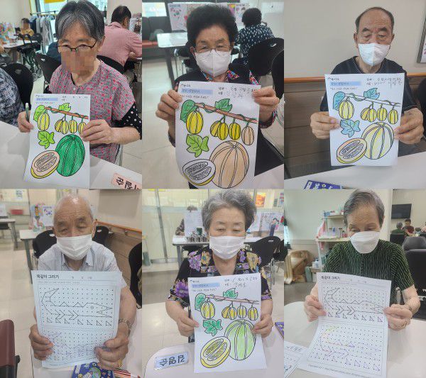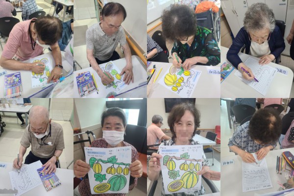 6월20일 인지활동 프로그램 Info. Writer 명품다산주야간보호센터 Date 25-06-20 13:41 View492 Reply0 Link 이전 다음 목록 Content 여름철 과일 맛있는 참외의 그림판을 보고 예쁘게 색칠해서 완성해 보기!!도표안에 악어를 보고 그림을 똑 같이 점선을 이용하여 그려 보기!! 이전 다음 목록