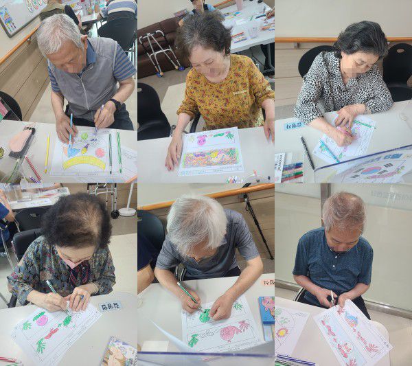 6월25일 인지활동 프로그램 Info. Writer 명품다산주야간보호센터 Date 25-06-25 11:47 View521 Reply0 Link 이전 다음 목록 Content 불볕 더위에 뜨거운 햇볕으로 자외선을 차단할 바다풍경 썬켑을 만들어 보기!!바다풍경을 예쁘게 색칠한후에 오려서 붙여서 완성해 보기!! 이전 다음 목록