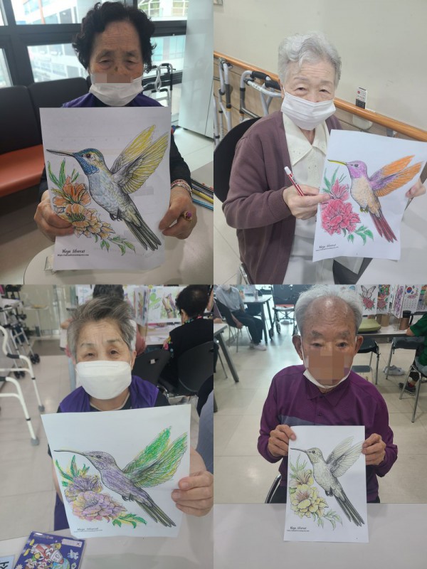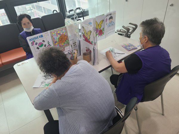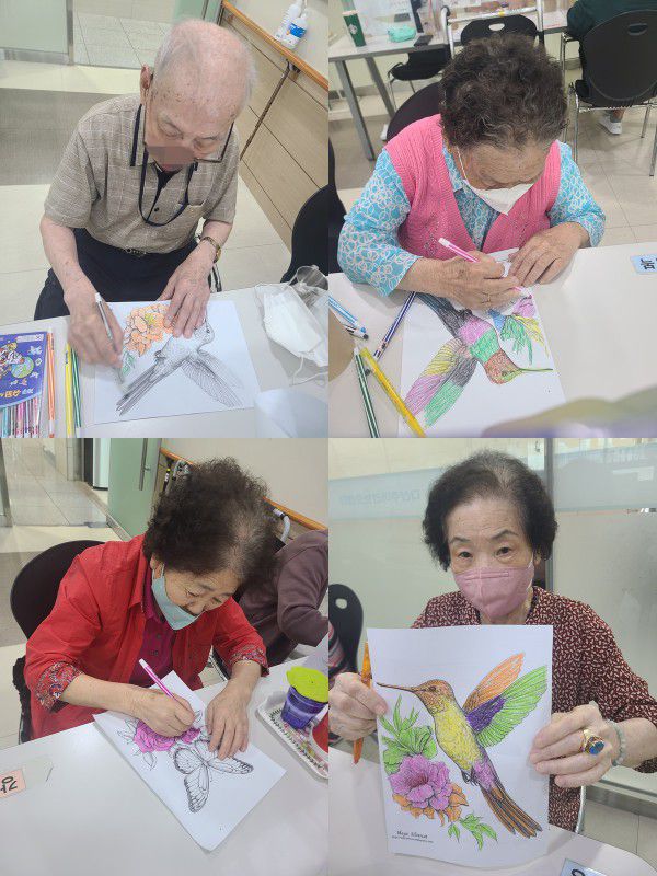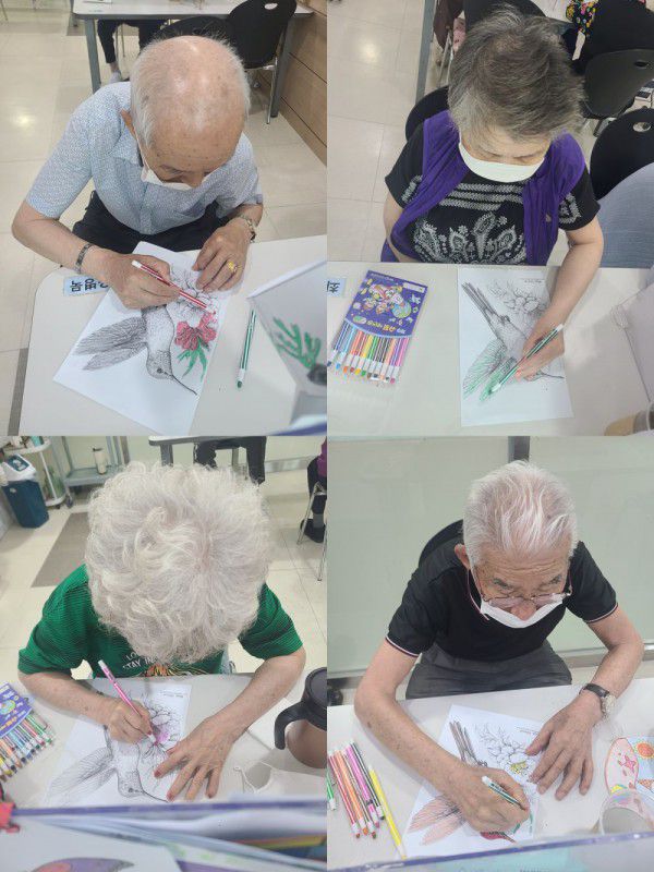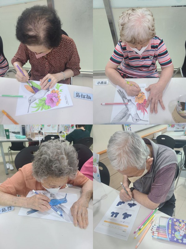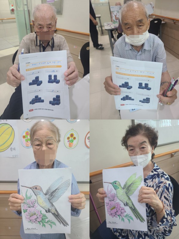 6월28일 인지활동 프로그램 Info. Writer 명품다산주야간보호센터 Date 25-06-28 14:57 View486 Reply0 Link 이전 다음 목록 Content 그림판을 예쁘게 색칠해 보기 와 블럭의 갯수를 세어서 적어 보기!!어르신들이 색칠도 잘하시고 블럭갯수도 어렵지만 세어 보시면서인지활동 프로그램을 잘 수행하였습니다. 이전 다음 목록