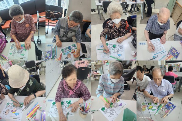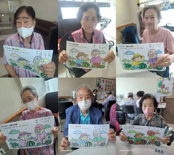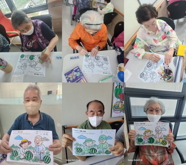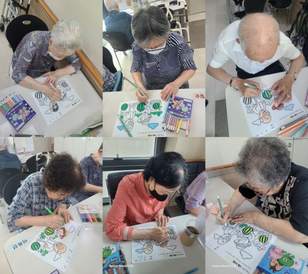 7월14일 인지활동 프로그램 Info. Writer 명품다산주야간보호센터 Date 25-07-14 13:02 View451 Reply0 Link 이전 다음 목록 Content 여름에 수박 밭에서 수박을 따는 그림을 생각해 보면서 예쁘게 색칠해 보기!!글자판에 "치"와"15"의 글자를 찾아서 동그라미하고 "치"자는 몇개이고"15"는 몇개인지 적어 보고 두수를 합하면 얼마인지 적어 보기!! 이전 다음 목록