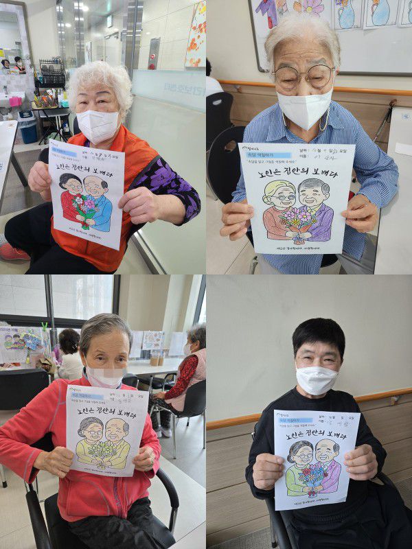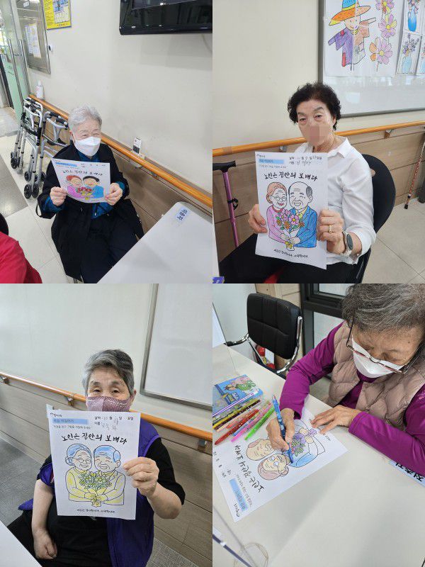 10월7일 인지활동 프로그램 Info. Writer 명품다산주야간보호센터 Date 25-10-07 15:11 View233 Reply0 Link 이전 다음 목록 Content "노인은 집안에 보배다" 속담을 읽어 보시후에 예쁘게 색칠을 해보기!! 이전 다음 목록