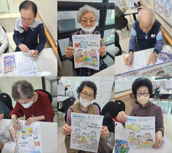 10월10일 인지활동 프로그램 Info. Writer 명품다산주야간보호센터 Date 25-10-10 13:48 View207 Reply0 Link 이전 다음 목록 Content 추석 연휴를 맞이하여 신나는 윷놀이 한판을 하는 모습의 그림을 멋지게 색칠해 보기!!민속놀이 단어를 글자판에서 찾아서 동그라미 하여 완성해 보기!! 이전 다음 목록