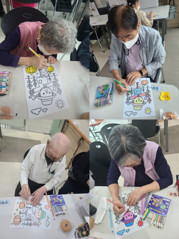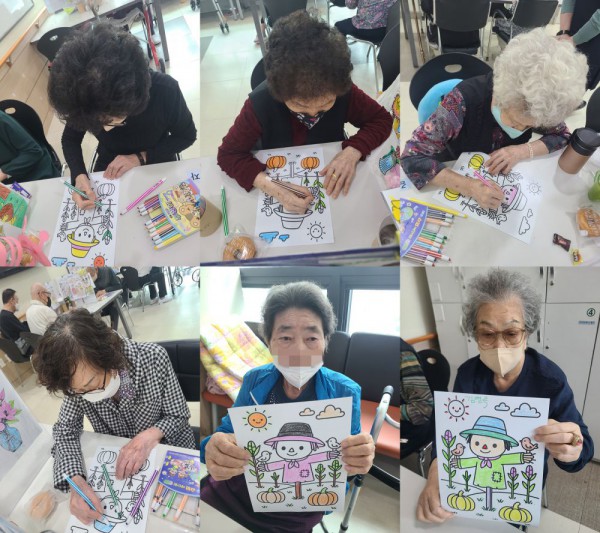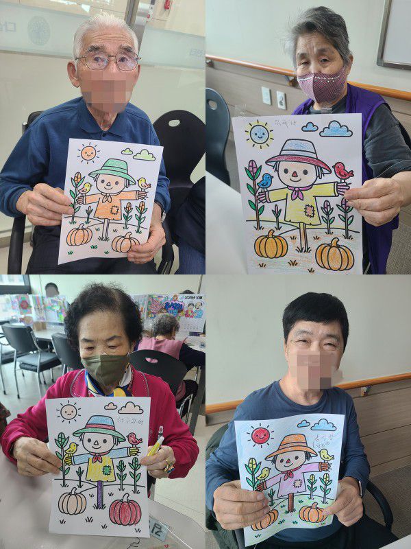10월11일 인지활동 프로그램 Info. Writer 명품다산주야간보호센터 Date 25-10-11 14:16 View227 Reply0 Link 이전 다음 목록 Content 가을의 허수아비 풍경의 그림을 색상을 잘 생각해 보면서 예쁘게 색칠해 보기!! 이전 다음 목록