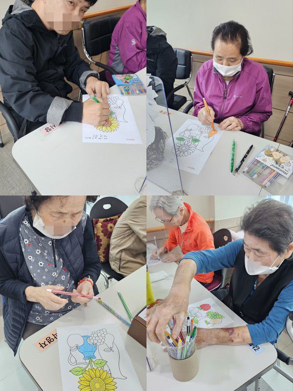 10월18일 인지활동 프로그램 Info. Writer 명품다산주야간보호센터 Date 25-10-18 16:36 View212 Reply0 Link 이전 다음 목록 Content 해바라기꽃 화병을 꾸며보기!!색상을 골라서 그림판을 색칠하여 예쁘게 색칠하여 완성해 보기!! 이전 다음 목록