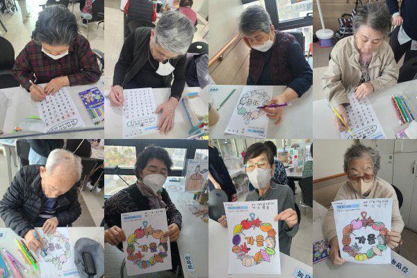 10월31일 인지활동 프로그램 Info. Writer 명품다산주야간보호센터 Date 25-10-31 12:01 View184 Reply0 Link 이전 다음 목록 Content 가을의 과일로 된 그림판을 예쁘게 색칠하여 가을리스 만들어 보기!!가을에 관련단 단어판에서 단어를 찾아서 동그라미 해보기!! 이전 다음 목록