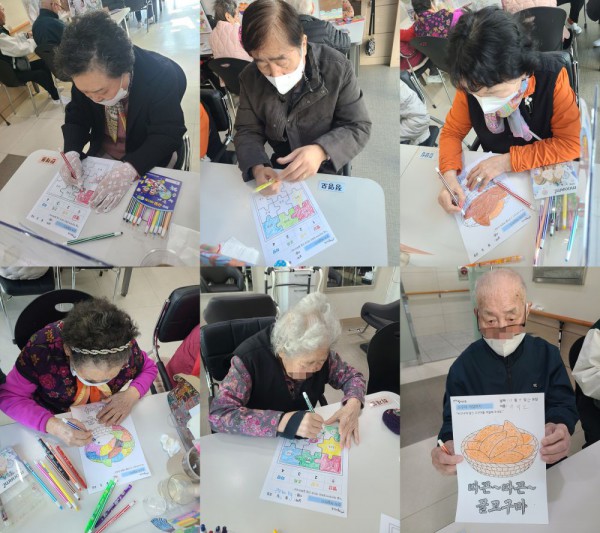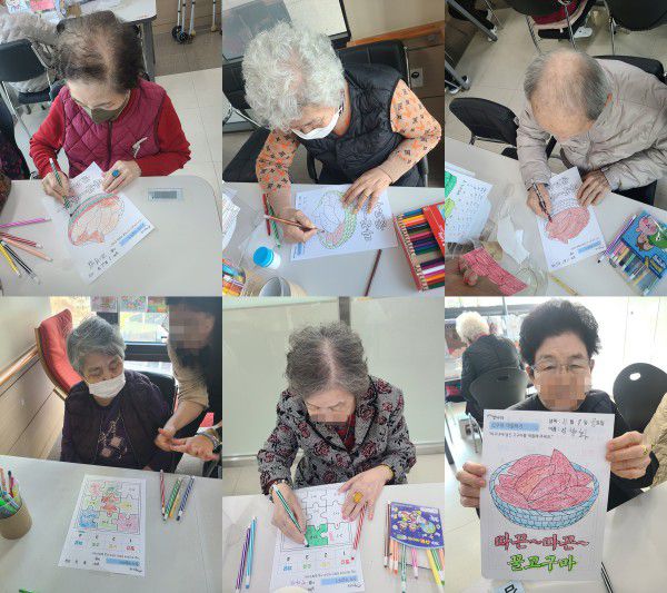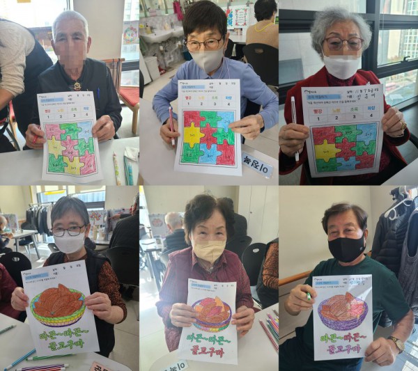 11월7일 인지활동 프로그램 Info. Writer 명품다산주야간보호센터 Date 25-11-07 11:51 View167 Reply0 Link 이전 다음 목록 Content 요즘 유행하는 따끈따끈한 꿀고구마 바구니를 색을 골라서 예쁘게 색칠하기!!수식을 계산하여 답에 맞는 숫자에 색을 골라서 색칠을 해보기!! 이전 다음 목록