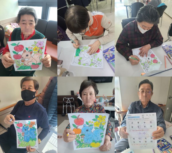 11월17일 인지활동 프로그램 Info. Writer 명품다산주야간보호센터 Date 25-11-17 13:22 View168 Reply0 Link 이전 다음 목록 Content 가을의 풍경 다람쥐에 대한 그림을 보시고 상상의 색상을 골라서 예쁘게 색칠해 보기!!글자판을 보고 힌트를 읽어 보고 단어를 만들어서 빈칸에 써 넣어 보기!! 이전 다음 목록