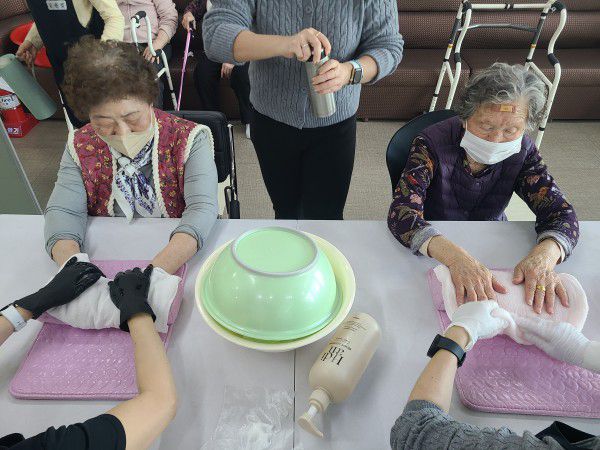 11월18일 족욕 및 손마사지 Info. Writer 명품다산주야간보호센터 Date 25-11-18 11:23 View127 Reply0 Link 이전 다음 목록 Content 날씨가 영하로 내려가는 날씨에 어르신들이 족욕을 하시면서 피로도 푸시면서즐거워 하시고 손마사지를 하시면서 이야기도 나누면서 행복한 시간을 보냈습니다. 이전 다음 목록