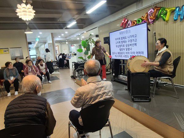 11월20일 외부강사 프로그램(민요교실) Info. Writer 명품다산주야간보호센터 Date 25-11-20 15:24 View142 Reply0 Link 이전 다음 목록 Content 장구가락에 맞춰서 어르신들이 민요 따라 부르시기 열심히 해주시고배운민요를 직접 부르시면서 재미있고 즐거운 시간을 보냈습니다. 이전 다음 목록