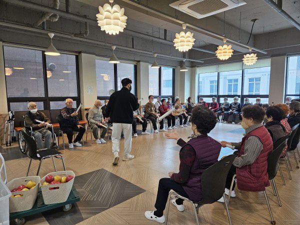 11월22일 외부강사 프로그램(실버놀이 활동) Info. Writer 명품다산주야간보호센터 Date 25-11-23 10:53 View137 Reply0 Link 이전 다음 목록 Content 어르신들과 함께 노래를 부르면서 몸풀기 체조를 하시고 여러동작들도 따라해 보시고여러가지 도구를 이용하여 즐겁게 동작도 하시고 놀이도 하시면서 즐거운 시간을 보냈습니다. 이전 다음 목록
