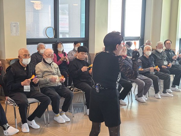 11월24일 외부강사 프로그램(도구놀이 체조) Info. Writer 명품다산주야간보호센터 Date 25-11-24 15:26 View133 Reply0 Link 이전 다음 목록 Content 어르신들과 함께 노래도 부르면서 율동도 하고 여러가지 동작도 열심히따라하시고 도구를 이용하여 신나는 노래에 맞춰서 재미있게 동작도하시면서 즐겁고 재미있는 시간을 보냈습니다. 이전 다음 목록