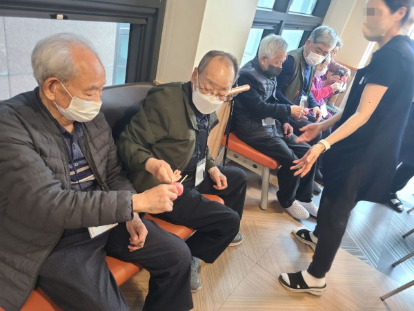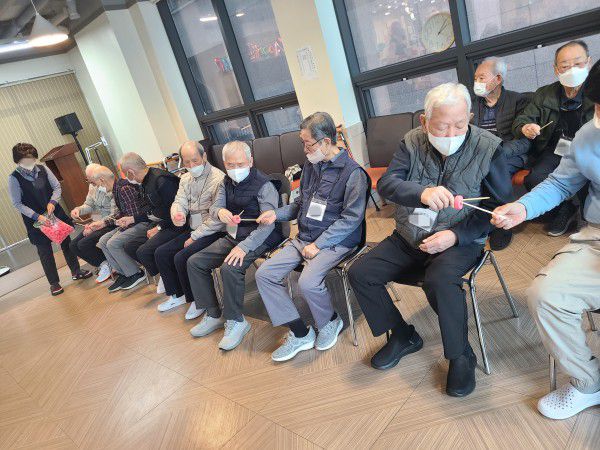 11월25일 외부강사 프로그램 Info. Writer 명품다산주야간보호센터 Date 25-11-25 15:03 View122 Reply0 Link 이전 다음 목록 Content 음악에 맞춰서 몸풀기 체조도 하시고 손유희 동작도 열심히 따라하시고나무젓가락에 링을 끼워서 옆으로 전달하기 게임도 하시면서 재미있고즐거운 시간을 보냈습니다. 이전 다음 목록
