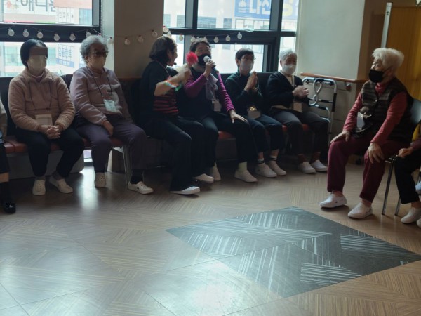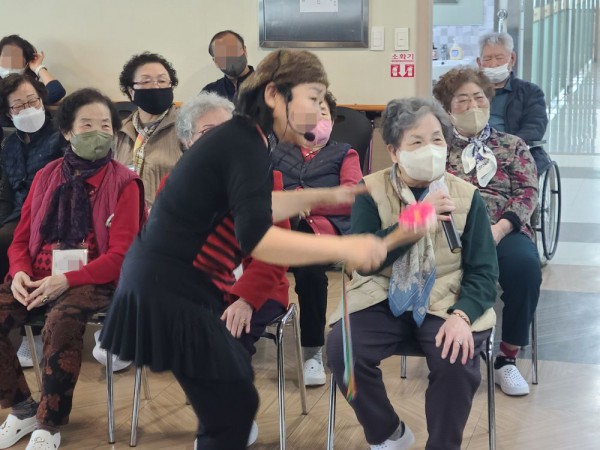 12월11일 외부강사 프로그램(민요교실) Info. Writer 명품다산주야간보호센터 Date 25-12-11 15:24 View37 Reply0 Link 이전 다음 목록 Content 어르신들과 함께 장구가락에 맞춰서 민요를 배우고 따라 부르시면서 즐거워 하시고배운민요는 어르신들이 한절 또는 한소절씩 불러 보시면서 재미있는 시간을 보냈습니다. 이전 다음 목록
