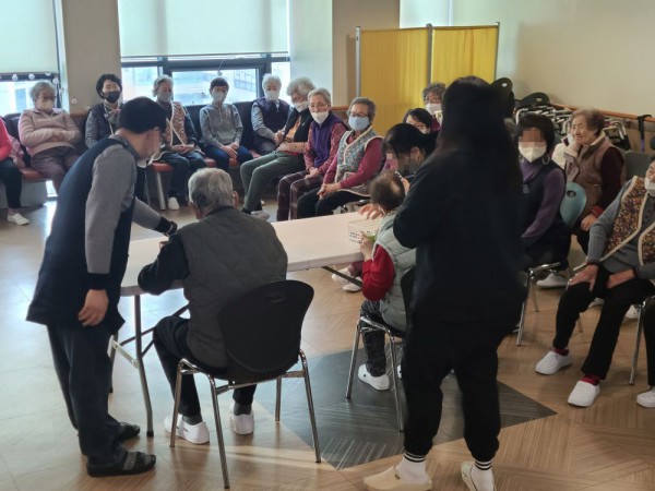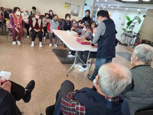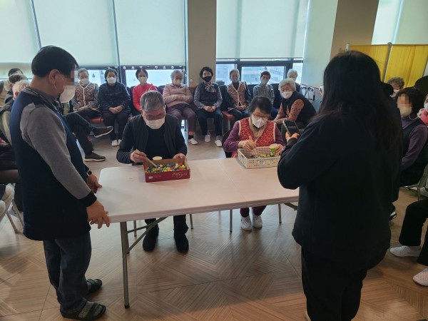 1월14일 내부강사 프로그램(레크레이션) Info. Writer 명품다산주야간보호센터 Date 26-01-14 15:56 View178 Reply0 Link 이전 다음 목록 Content 어르신들과 함께 신나게 박수를 치면서 노래를 힘차게 부르고 율동도 해보고젓가락이나 숟가락을 이용하여 스치로폼 공을 집에서 컵에 많이 넣기 게임도하면서 모두 즐겁고 재미있는 시간을 보냈습니다. 이전 다음 목록