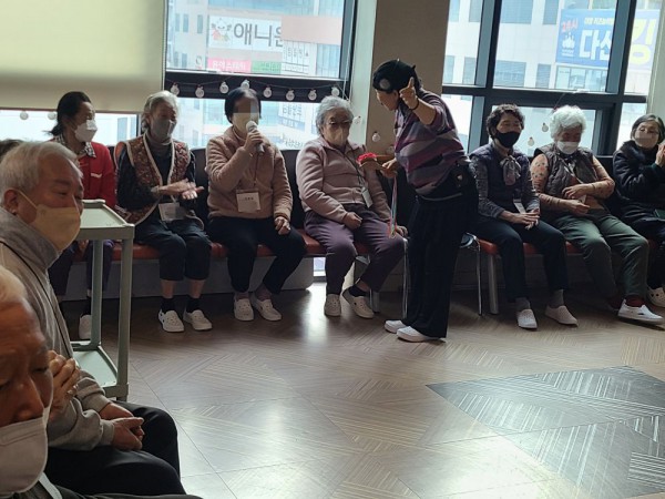 1월15일 외부강사 프로그램(민요교실) Info. Writer 명품다산주야간보호센터 Date 26-01-15 15:42 View187 Reply0 Link 이전 다음 목록 Content 장구를 치시면서 민요를 선창하시고 어르신들이 따라 불러 보시고 재미있어 하시고 쉽게 부를수 있는 민요는 어르신들이 직접 불러 보시고즐거운 시간을 보냈습니다. 이전 다음 목록