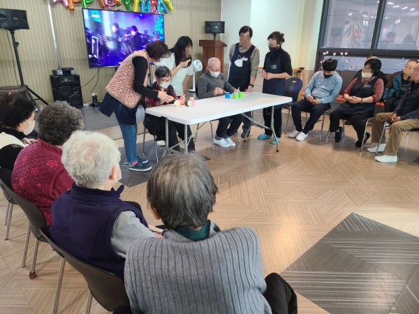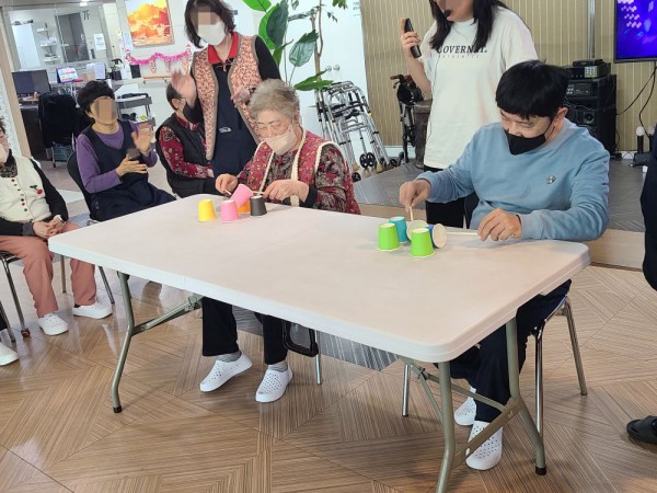 1월17일 내부강사 프로그램(레크레이션) Info. Writer 명품다산주야간보호센터 Date 26-01-17 14:49 View190 Reply0 Link 이전 다음 목록 Content 어르신들과 함께 노래도 함께 신나게 불러 보시고 율동도 하시면서 즐기시고나무젓가락을 이용하여 소근육운동도 되는 컵쌓기 게임도 하면서 재미있는시간을 보냈습니다. 이전 다음 목록