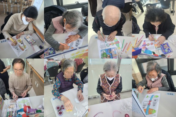 1월28일 인지활동 프로그램 Info. Writer 명품다산주야간보호센터 Date 26-01-28 11:40 View166 Reply0 Link 이전 다음 목록 Content 신년도에 액막이 명태를 꾸며보기로 색칠을 하고 오려서 붙여서 완성하기!!나비 만들어 보기로 용지를 말아서 붙여서 완성해 보기!! 이전 다음 목록