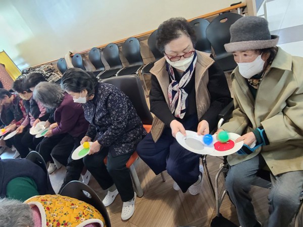 2월11일 내부강사 프로그램(레크레이션) Info. Writer 명품다산주야간보호센터 Date 26-02-11 15:17 View142 Reply0 Link 이전 다음 목록 Content 신나게 노래도 함께 불러 보시고 몸풀기 체조도 열심히 따라하시면서 즐기시고접시에 공을 옆어르신에게 손을 대지 않고 전달하기 게임을 하시면서 모두 재미있는시간을 보냈습니다. 이전 다음 목록