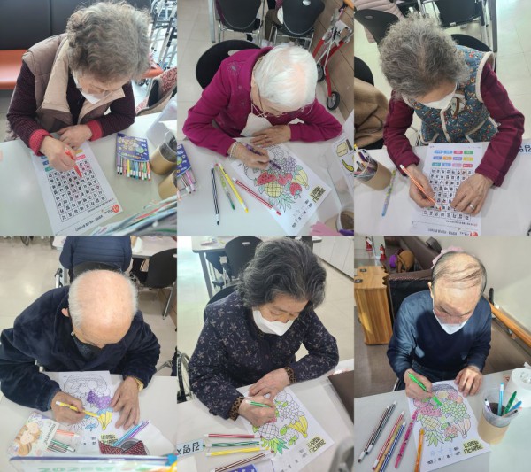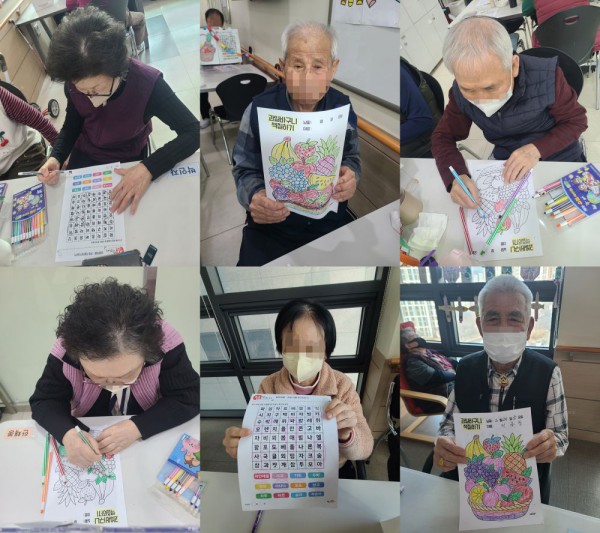 2월20일 인지활동 프로그램 Info. Writer 명품다산주야간보호센터 Date 26-02-20 12:01 View59 Reply0 Link 이전 다음 목록 Content 글자판을 보시고 보기의 단어를 찾아서 동그라미 해보기!!그림을 보시고 색상을 골라서 예쁘게 색칠하여 완성하기!! 이전 다음 목록