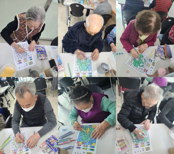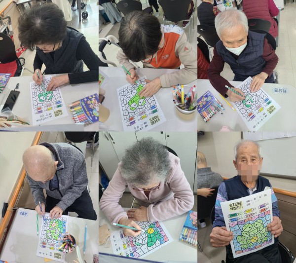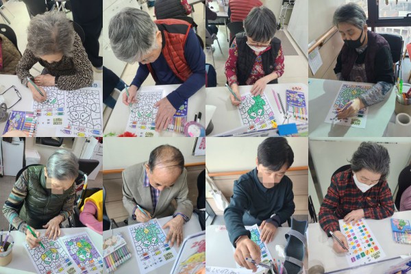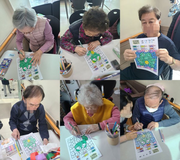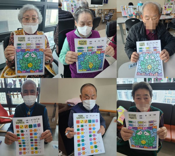 2월27일 인지활동 프로그램 Info. Writer 명품다산주야간보호센터 Date 26-02-27 12:04 View51 Reply0 Link 이전 다음 목록 Content 번호에 맞는 색을 찾아서 그림판에 보시고 예쁘게 색칠해서 완성해 보기!!그림의 도형을 보시고 계산하여 맞는 정답을 적어 넣어 보기!! 이전 다음 목록
