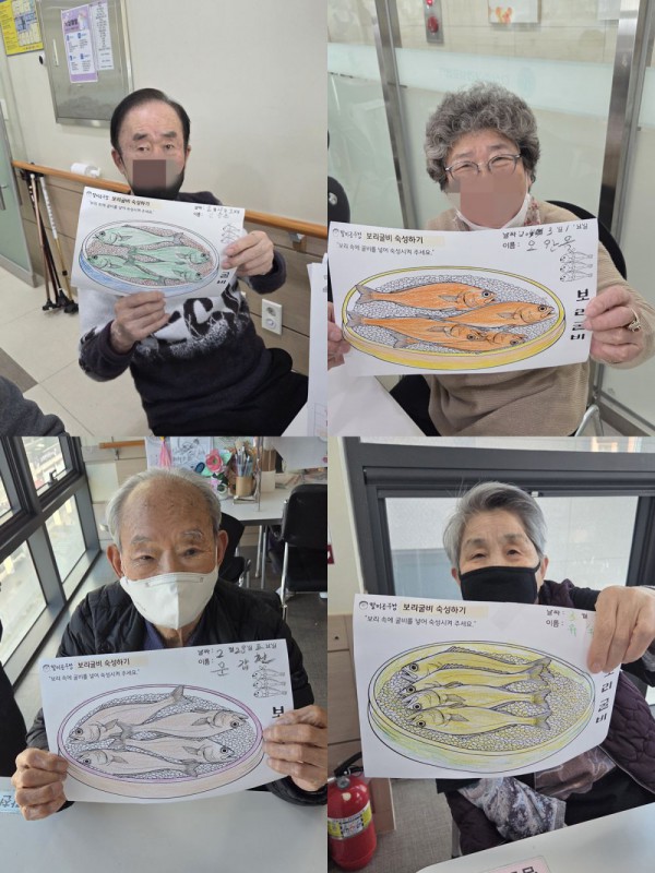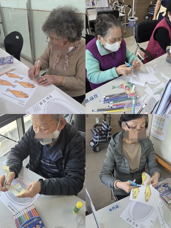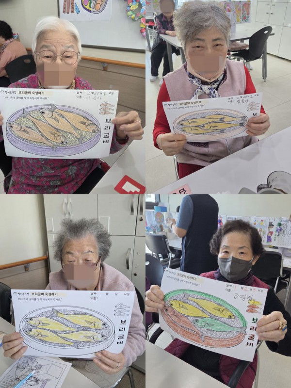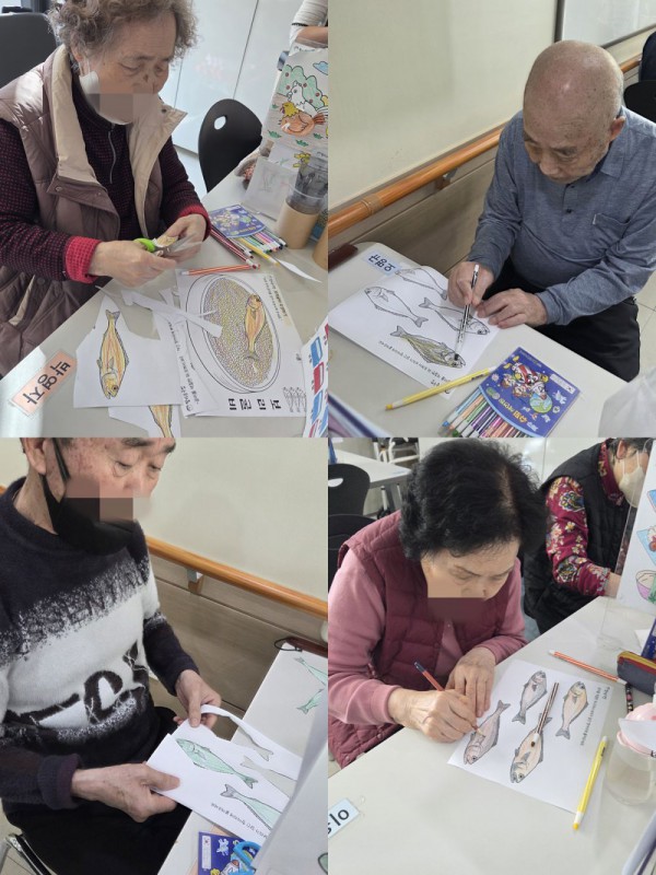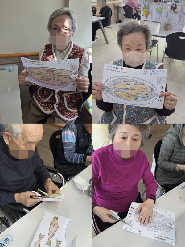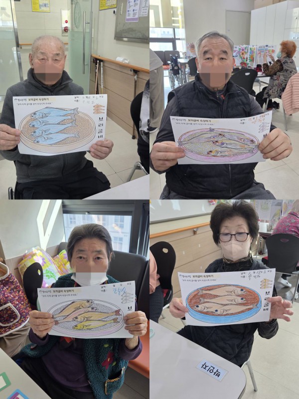 2월28일 인지활동 프로그램 Info. Writer 명품다산주야간보호센터 Date 26-02-28 17:36 View46 Reply0 Link 이전 다음 목록 Content 굴비를 멋지게 색칠한후에 오려서 보리가 담긴 항아리에 넣어서 숙성해 보기!!굴비 숙성에 대해서 이야기 해보면서 항아리에 보리가 담긴 그림도 색칠하기!! 이전 다음 목록