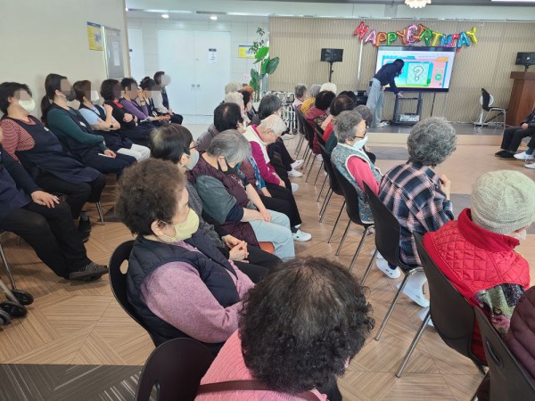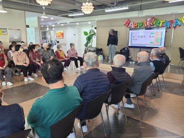 3월4일 내부강사 프로그램(레크레이션) Info. Writer 명품다산주야간보호센터 Date 26-03-04 15:52 View32 Reply0 Link 이전 다음 목록 Content 음악에 맞춰서 어르신들과 함께 신나게 노래도 불러 보시고 몸풀기 체조도 하고 속담퀴즐 풀어보기 게임도 하시면서 재미있는 시간을보냈습니다. 이전 다음 목록
