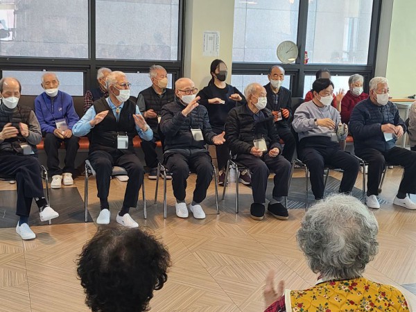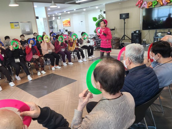 3월9일 외부강사 프로그램(도구놀이 체조) Info. Writer 명품다산주야간보호센터 Date 26-03-09 16:05 View317 Reply0 Link 이전 다음 목록 Content 지난주 "경칩" 절기를 주제로 개구리 노래를 부르면서 율동을 즐겁게 해 보시고도구를 이용하여 여러동작들을 따라하시면서 신나는 시간을 보냈습니다. 이전 다음 목록