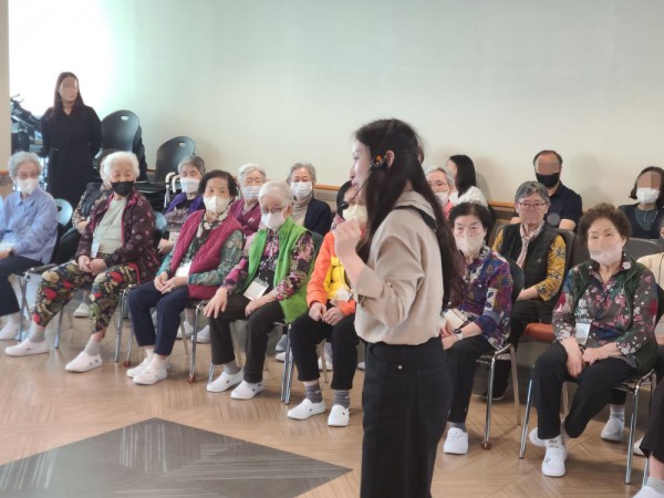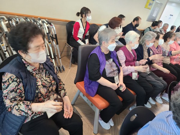 4월23일 (목요일) 외부강사 프로그램(시연 선생님) Info. Writer 명품다산주야간보호센터 Date 26-04-23 15:22 View3 Reply0 Link 다음 목록 Content 오늘 프로그램을 시연으로 하시는 선생님이 오셔서 옛날이야기 항아리에 대해서 이야기를 풀어 주시고 그와 관련된 여러가지동작들을 음악에 맞춰서 어르신들과 함께 즐겁게 율동을 하면서재미있고 즐거운 시간을 보냈습니다. 다음 목록