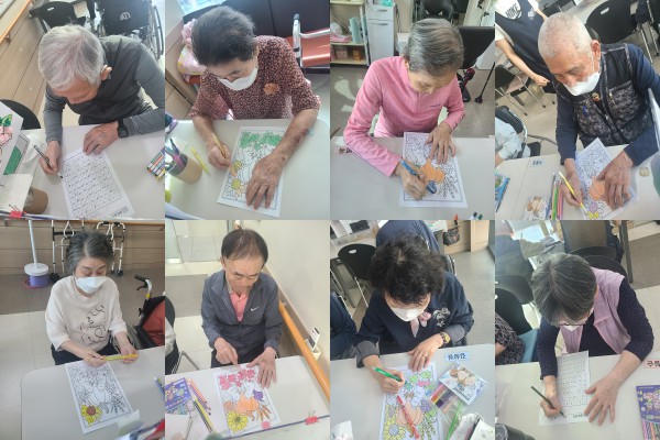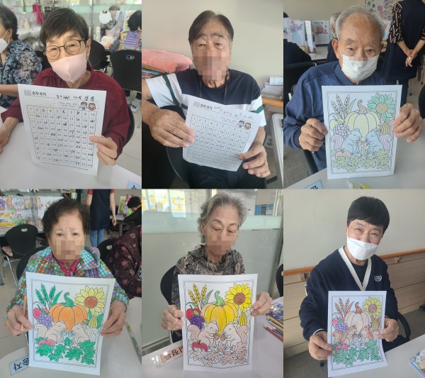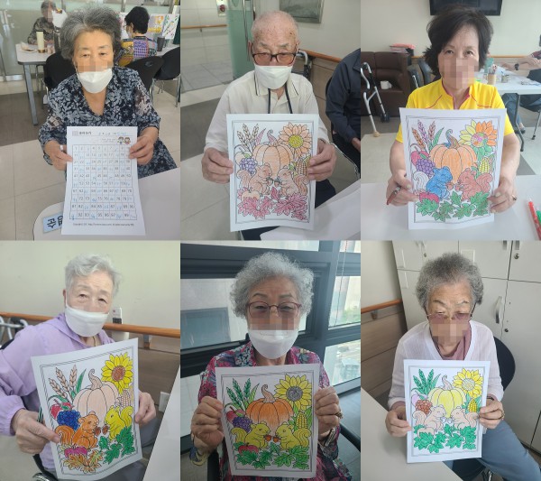 9월22일 인지활동 프로그램 Info. Writer 명품다산주야간보호센터 Date 25-09-22 13:36 View67 Reply0 Link 이전 다음 목록 Content 가을이 무르익어 가는 풍성한 계절의 풍경을 예쁘게 색칠해 보기!!숫자의 배열을 보시고 빈칸에 알맞은 숫자을 써 넣어 보기!! 이전 다음 목록