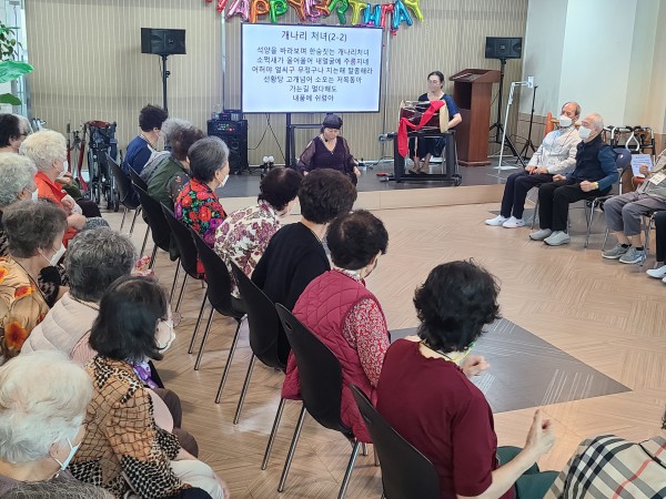 9월25일 외부강사 프로그램(민요교실) Info. Writer 명품다산주야간보호센터 Date 25-09-25 15:23 View54 Reply0 Link 이전 다음 목록 Content 장구도 치시면서 함께 민요를 힘차게 불러 보시면서 배우시고배운 민요는 어르신들이 직접 불러 보시면서 모두 흥이나고재미있는 시간을 보냈습니다. 이전 다음 목록