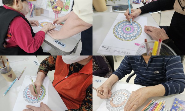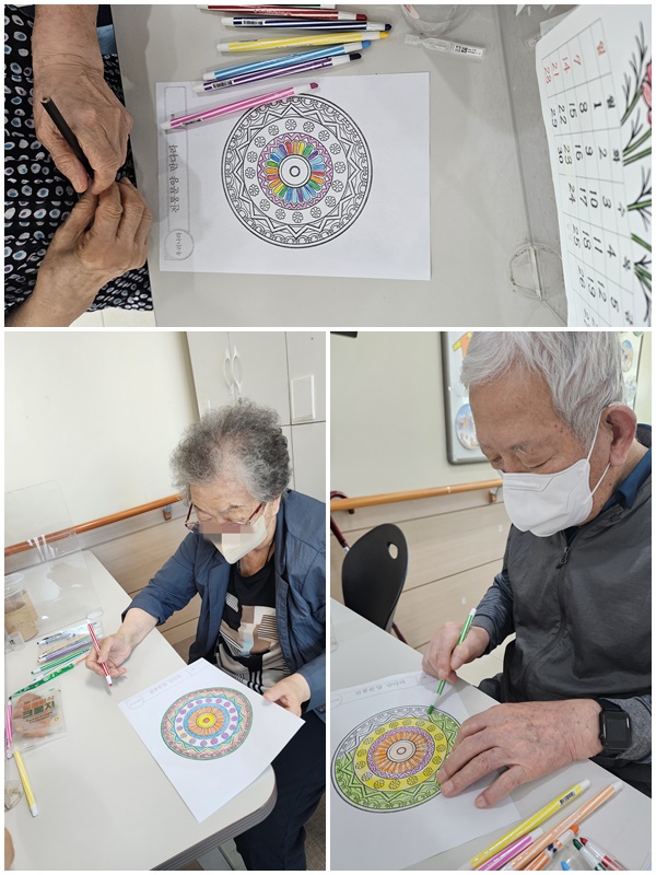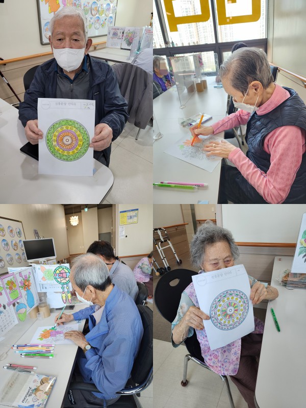 9월27일 인지활동 프로그램 Info. Writer 명품다산주야간보호센터 Date 25-09-27 18:18 View53 Reply0 Link 이전 다음 목록 Content 만다라 문형의 그림을 어르신들이 상상한 색상을 골라서 멋지게 색칠해 보기!! 이전 다음 목록