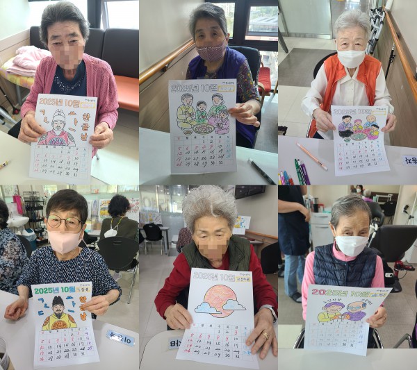 9월29일 인지활동 프로그램 Info. Writer 명품다산주야간보호센터 Date 25-09-29 11:54 View44 Reply0 Link 이전 다음 목록 Content 9월 한달이 지나가는 시점에서 어르신들이 10월에 사용하시게 될 달력 만들어 보기!!그림판을 예쁘게 색칠을 하시고 날짜를 평일,주말, 공휴일 구분하여 써 넣어 보기!! 이전 다음 목록