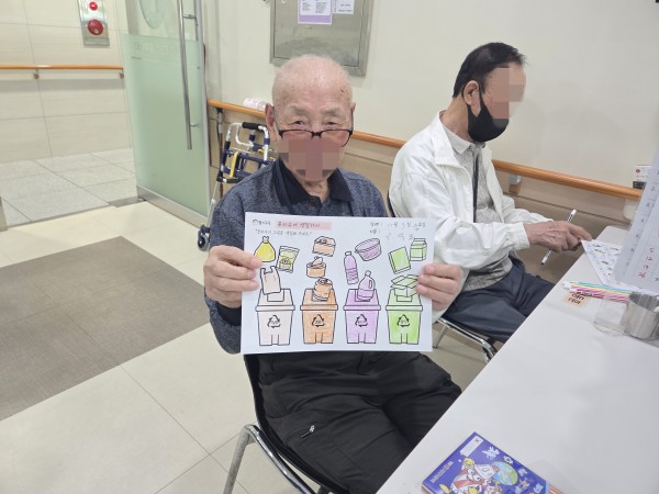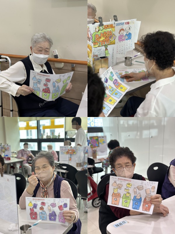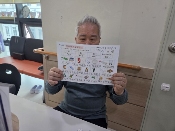 10월3일 인지활동 프로그램 Info. Writer 명품다산주야간보호센터 Date 25-10-03 14:57 View13 Reply0 Link 이전 다음 목록 Content 분리수거 하는 날을 확인한 후에 알맞은 요일을 적어보기!!분리수거에 대해서 알아보고 그림판을 색칠해 보기!! 이전 다음 목록