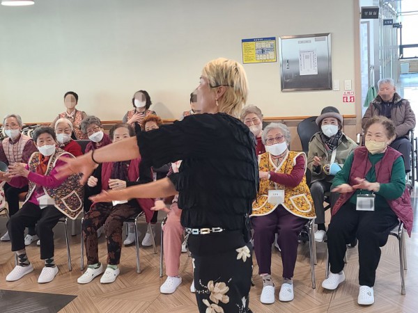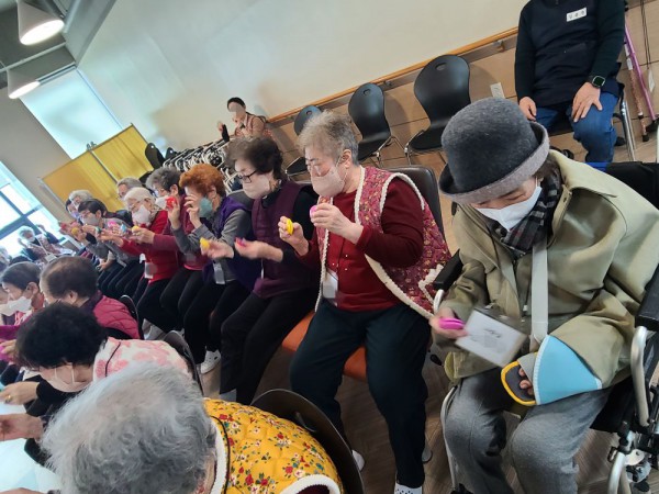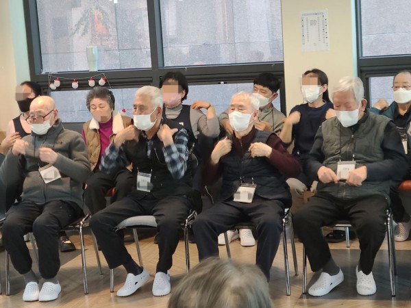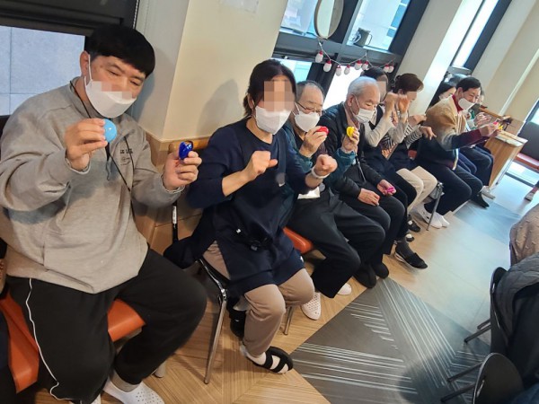 1월6일 외부강사 프로그램(레크레이션) Info. Writer 명품다산주야간보호센터 Date 26-01-06 15:01 View199 Reply0 Link 이전 다음 목록 Content 음악에 맞춰서 몸풀기 체조를 열심히 따라하시고 손유희 및 여러동작들도잘 따라하시고 짝짝이를 이용하여 재미있는 동작도 음악에 맞춰서 틀리지않게 잘 하시면서 즐거운 시간을 보냈습니다. 이전 다음 목록