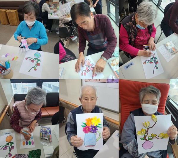 3월18일 인지활동 프로그램 Info. Writer 명품다산주야간보호센터 Date 26-03-18 13:11 View282 Reply0 Link 이전 다음 목록 Content 예쁜꽃이 있는 꽃병 꾸며보기로 그림판을 예쁘게 색칠을 하고오려서 붙여서 완성해 보기!! 이전 다음 목록