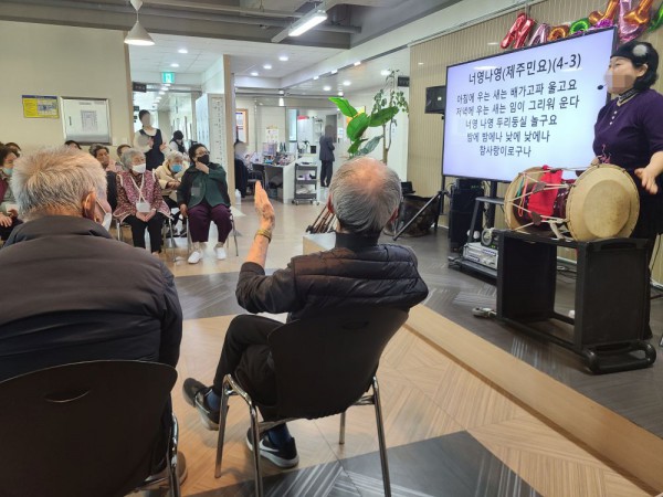 3월26일 외부강사 프로그램(민요교실) Info. Writer 명품다산주야간보호센터 Date 26-03-26 15:24 View236 Reply0 Link 이전 다음 목록 Content 흥이 나셔서 장구가락에 신나게 민요를 따라 불러 보시고 어깨춤도 덩실덩실추시고, 어르신들이 배운민요나 쉬운민요는 직접 불러 보시면서 재미있고즐거운 시간을 보냈습니다. 이전 다음 목록