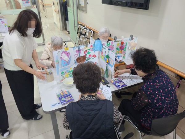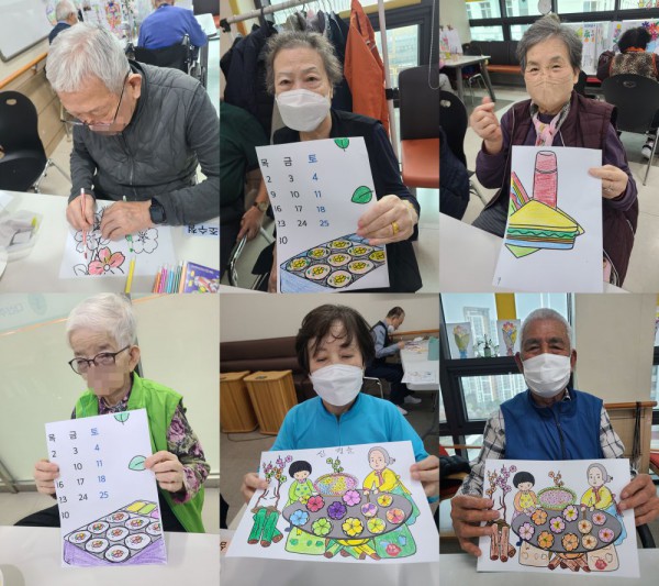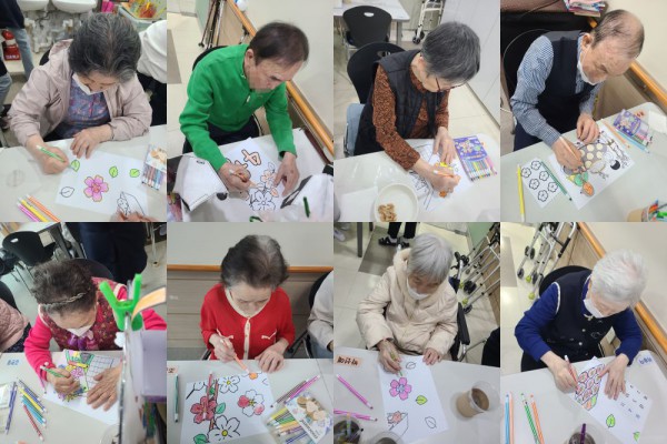 4월6일 (월요일) 인지활동 프로그램 Info. Writer 명품다산주야간보호센터 Date 26-04-06 13:26 View135 Reply0 Link 이전 다음 목록 Content 4월의 풍경의 그림을 협동화 작업으로 완성해 보기!! 어르신들이 맡은 파트를각각 색칠하여서 9장 합쳐서 하나의 그림을 완성해 보기로 모두 색칠을꼼꼼하게 잘 하셔서 멋진 그림을 완성하였습니다. 이전 다음 목록