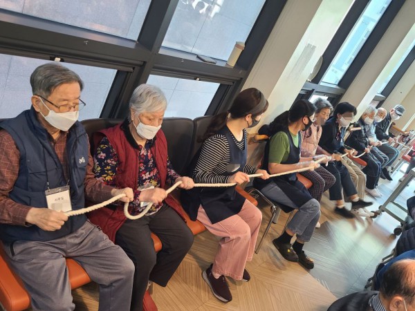 4월7일 (화요일) 외부강사 프로그램 Info. Writer 명품다산주야간보호센터 Date 26-04-07 14:49 View114 Reply0 Link 이전 다음 목록 Content 음악에 맞춰서 몸풀기 체조도 열심히 따라해 주시고 손유희 동작도 강사를 보시면서 최선을 다해서 동작을 해보시고, 밧줄을 이용하여 함께 동작하기도틀리지 않게 잘 맞춰서 하셔서 칭찬도 받으시고 밧줄에 종이컵을 넣어서옆으로 이동하기 게임도 해보시면서 즐거운 시간을 보냈습니다. 이전 다음 목록